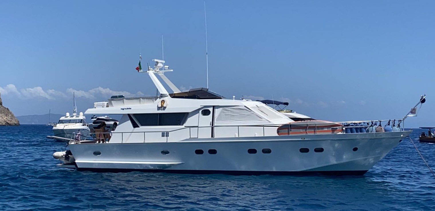 Last extraordinary maintenance works carried out: replacement of G.M. engines with electronic Caterpillar and electronic throttles (2004) - replacement of the generator with 16 kW CAT - replacement of cockpit teak (2005) - hull painting (2008) - replacement of all seacocks - replacement of engine batteries, services and generator - replacement of saloon and bridge carpet (2018) - overhaul of windlass winch (2018) - overhaul of life rafts - replacement kitchen appliances hob, oven, fridge/freezer (2022) - external cushions (2022).