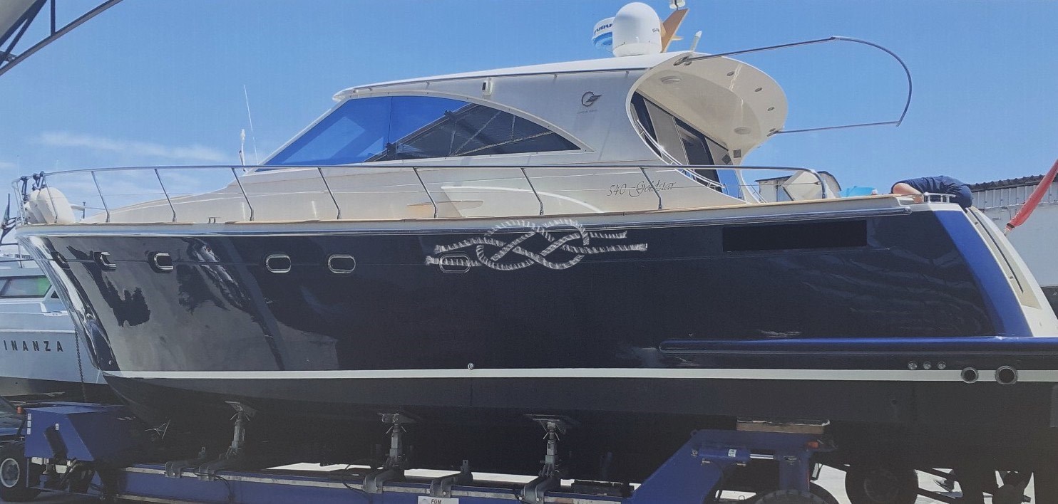 Boat in good general condition. Works 2026: new engine exhausts. Works 2025: replacement of all batteries, services and engines - renovation of all external cushions - new column fridge - new microwave - new induction hob - new window blinds - new awning at the stern - new awning at the bow. Jobs 2024: new dedicated chargers for services and engines - replacement of boiler - replacement of all bulbs with LEDs. Jobs 2023: new inverter. Jobs 2022: replacement of the left axle PSS seal - installation of the black water tank - replacement of the bow thruster charger - replacement of the automatic bilge pump - installation of the level for the grey water tank - arrangement of the saloon TV up and down mechanism - rudder maintenance - construction of two casings to preserve and cover the motors of the sliding curtain of the hard top. Jobs 2021: Total overhaul of the sunroof. Jobs 2019: New interior fabrics - total hull painting. Interior layout: Owner's cabin in the bow with double bed, bathroom, walk-in closet - VIP cabin with double bed and bathroom - guest cabin with two flat beds and bathroom - single crew cabin amidships with bathroom - single crew cabin aft with bathroom. Electronic: GPS/Plotter Furuno NavNet - Furuno echo sounder - Furuno radar - Furuno autopilot - Furuno VHF. Equipment: Electric bow thruster - TV and Glomex SAT antenna - air conditioning - stern platform with tender lift - opening hard top - wheelhouse side door - electro-hydraulic gangway - Fusion audio system - oven - fridge freezer - 4-burner induction hob - microwave - washing machine - underwater lights - spare propellers - 3.20 m tender with 20 hp outboard. (plus agency fees 5%)