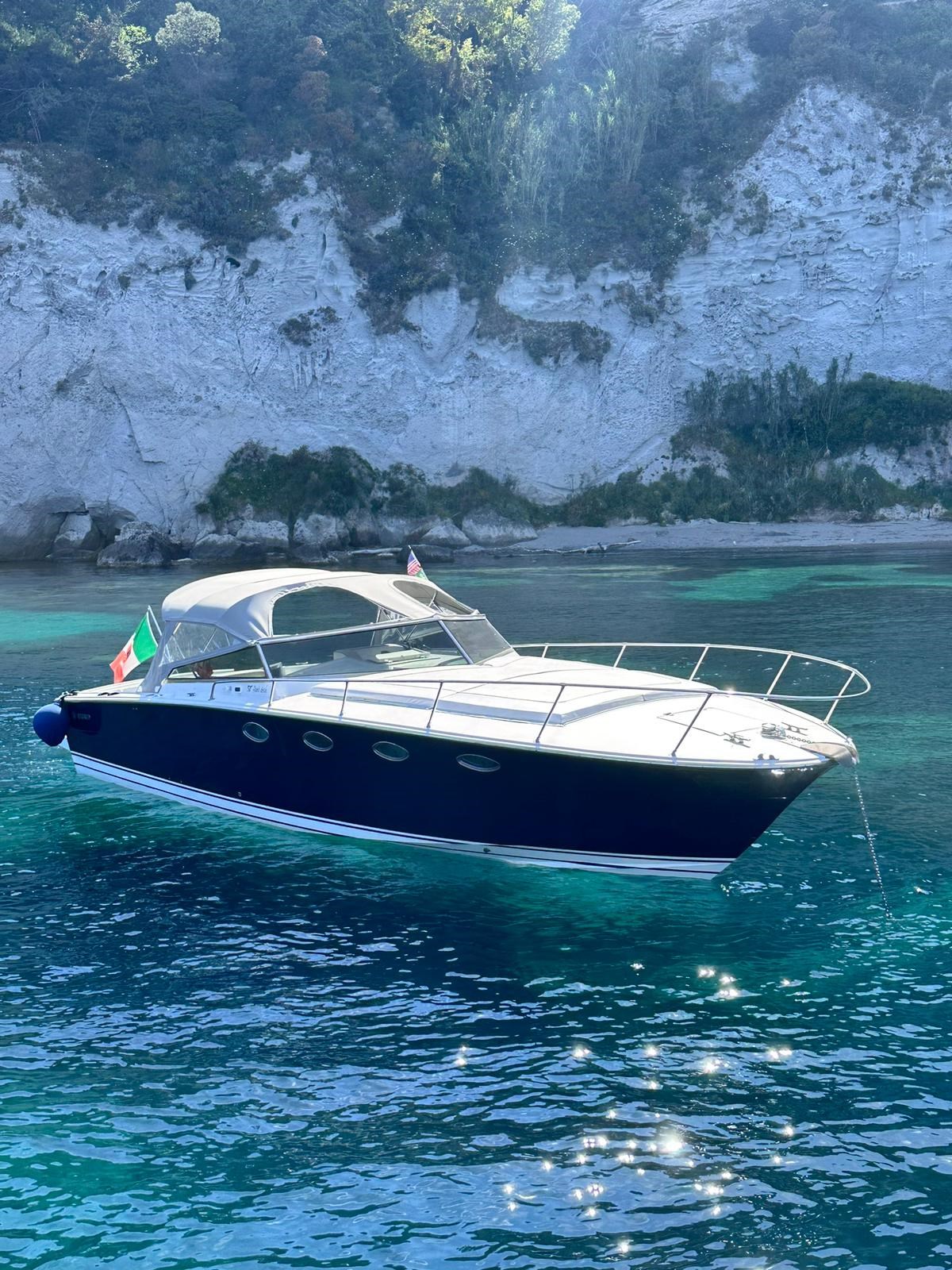 Work: 2021 Hull Painting 2022 Alternator and Starter Replacement 2023 stern drive overhaul with bell replacement Interior layout: Double cabin with V-shaped bed - convertible dinette - bathroom Electronic: Double cabin with V-shaped bed - convertible dinette - bathroom Equipment: Electric winch - internal fridge - stereo system - swim ladder - stern bridge - sun cushions - sun awning