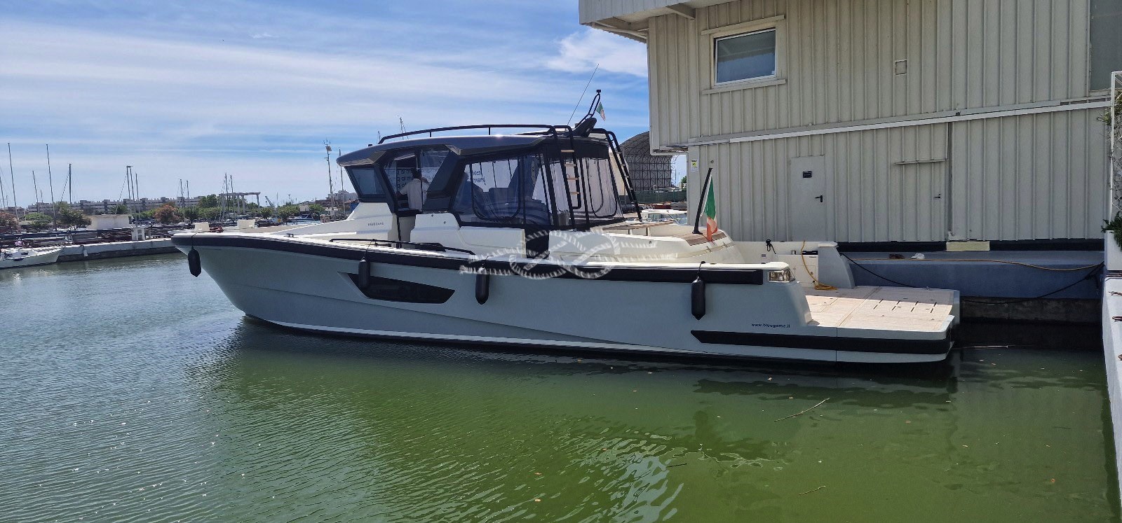 Aria condizionata - gruppo elettrogeno - elica di prua - antenna TV - TV LCD - tender lift - passerella elettroidraulica - piano cottura elettrico - frigo freezer - lavastoviglie.